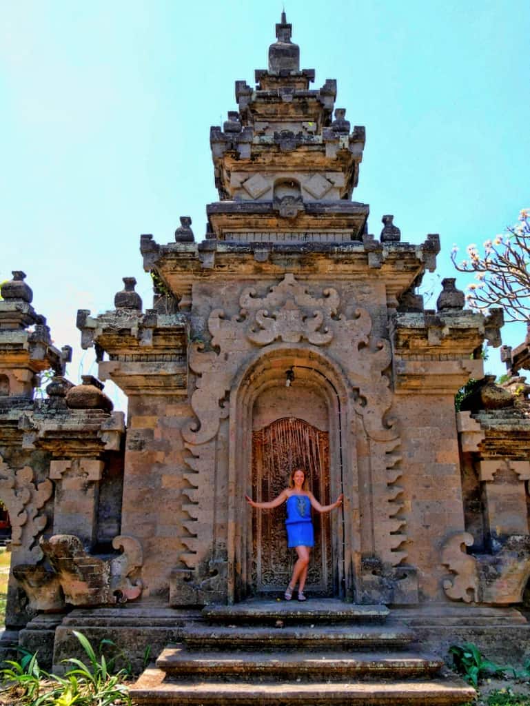 The black and white checked fabric is highly symbolic in Balinese Hinduism. You’ll see it in all the temples and it signifies the spiritual balance of the physical and unseen worlds.