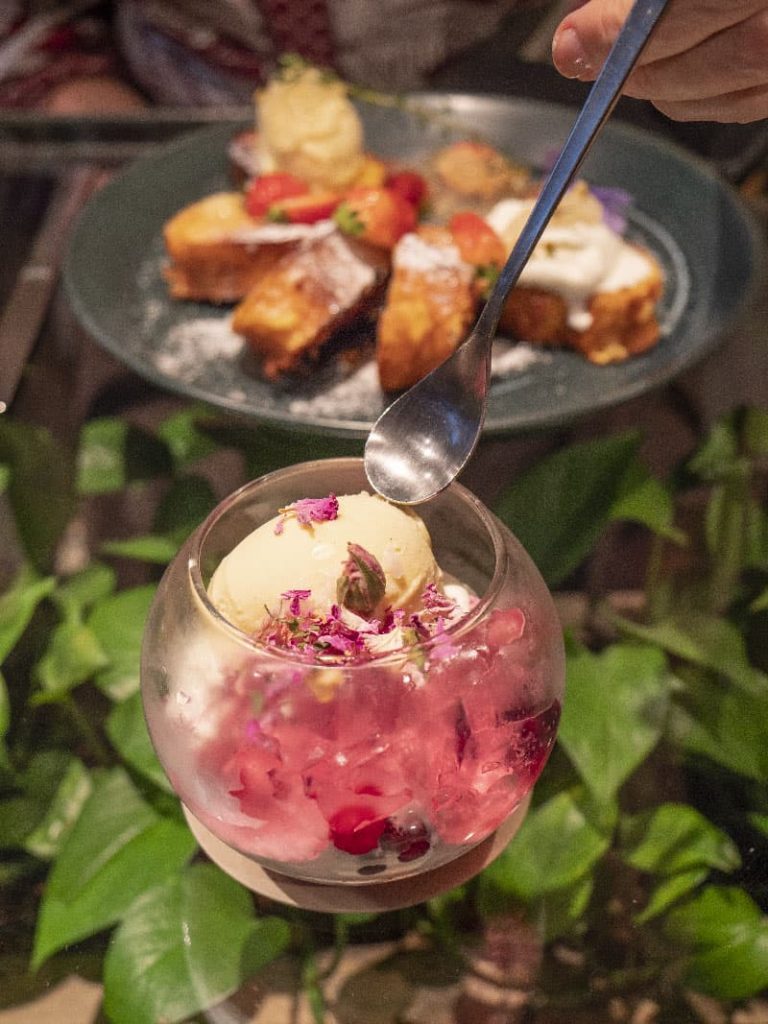 To finish, we tasted lapis asam manis, a cinnamon layer cake filled with coconut ice cream and candied tamarind with salak compote. I hadn’t tried salak or snake fruit before, it has a juicy citrusy taste that I really liked.