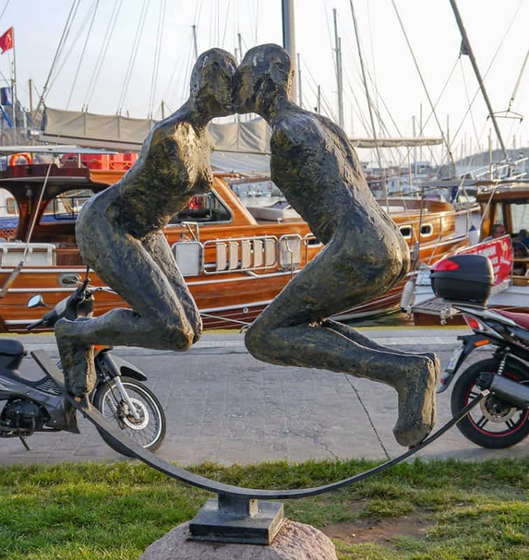 There are quite a few interesting statues to look out for along the way, including one of a diver with a diving helmet. The Statue of Love is particularly striking.