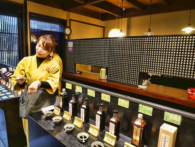Speciality sake tasting at Dassai – we highly recommend Dassai 23, made from milled rice from which 23% of the original grain remains. This complex sake has delicate notes of coconut, pineapple and grape.