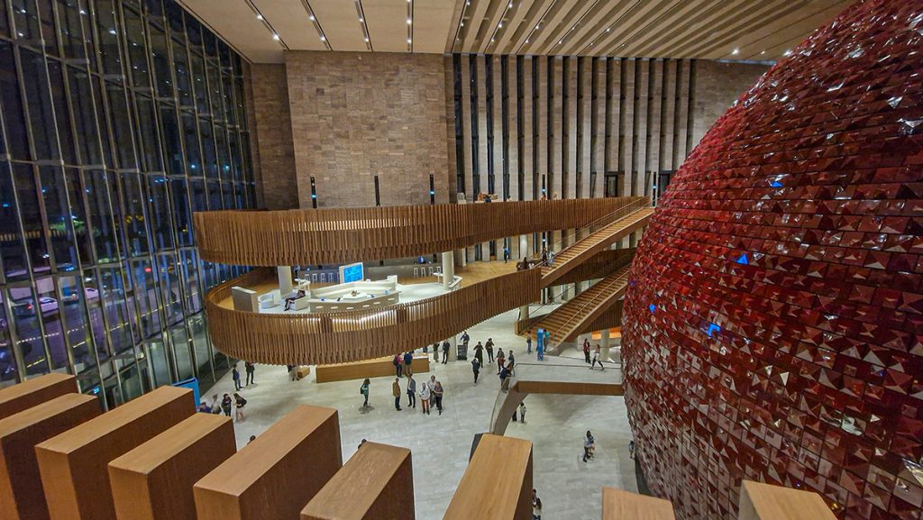 There are 6,800 intricate hanging art ornaments made from vintage silk kimonos displayed in the hotel. The ornaments have been hand stitched by well known quilt artist Mitsuyo Matsuo and 90 members of her Himawari Group of artists.