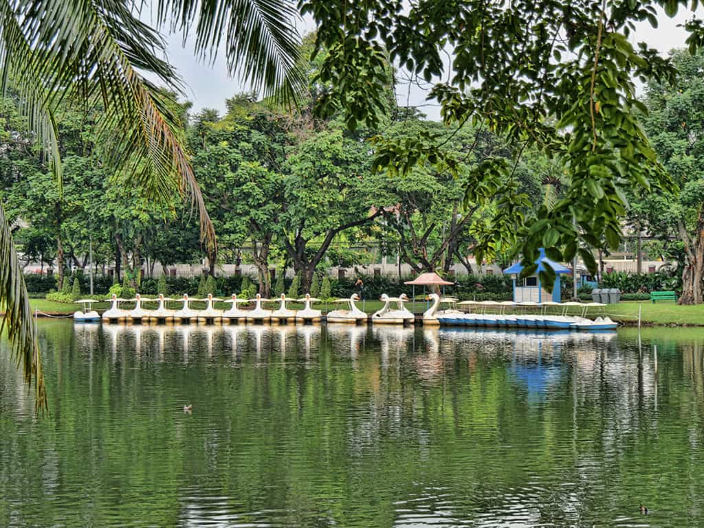 It’s virtually deserted during the day as the heat can be so strong. There’s a lake with charming swan boats. Enjoy a tasty lunch nearby at Café Claire within the Oriental Residence Bangkok.
