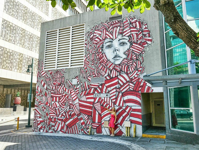 This is a cool place to meet with friends, having a collection of chairs suspended from the ceiling. They do a nice selection of snacks, light meals and matcha lattes. There’s some cool street art dotted around BGC, including this colourful mural.