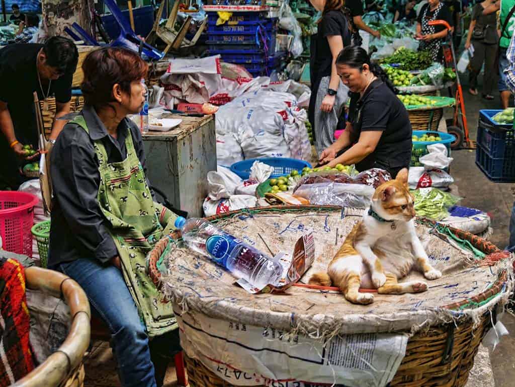 You might even spot this cat watching customers go by. You won’t come across many other tourists and it’s one of our favourite things to do in Bangkok off the beaten track.