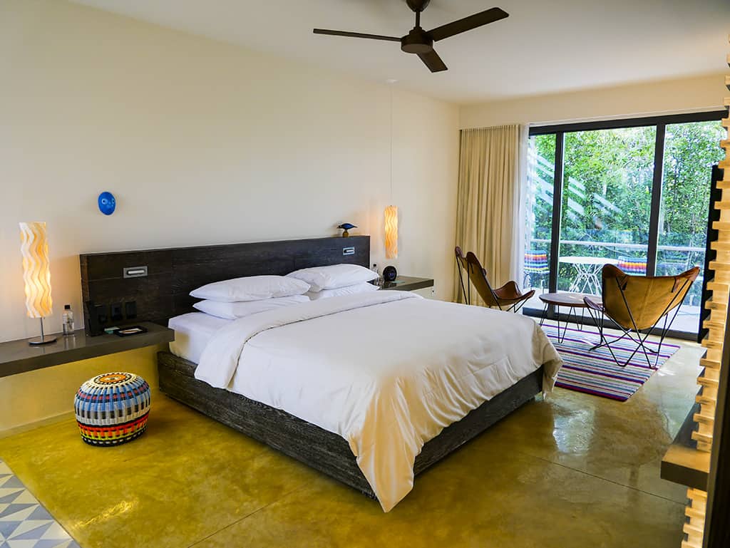 A quirky tuk-tuk makes a great backdrop for photos. The bedrooms are spacious and well appointed with all mod cons. There’s a large swimming pool and bar as well as a spa and gym.